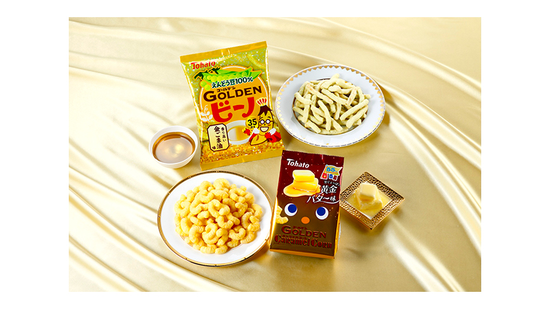 【東ハト】ロングセラー2ブランドの周年記念商品!「GOLDENキャラメルコーン・黄金バター味」「GOLDENビーノ・金ごま油味」期間限定新発売