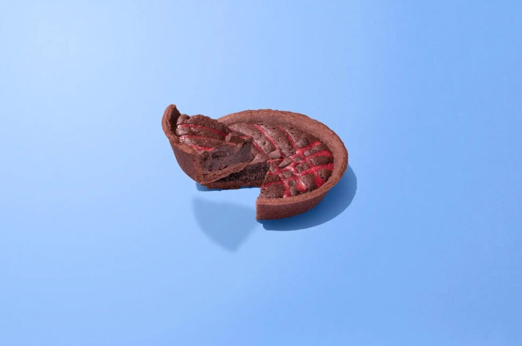 【内容】チョコタルトに、ラズベリー香るチョコ生地とキューブチョコを加え、甘酸っぱいラズベリーソースをかけて焼き上げたタルトです。チョコの濃厚さとラズベリーの甘酸っぱい爽やかさが加わった、見た目も味わいも楽しい一品です。