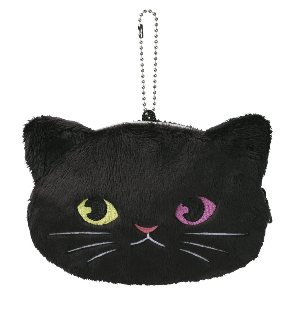 ⼤きく神秘的な⽬をした⿊猫のふわふわポーチにチョコレートクッキーやマシュマロを集めました。 ポーチの内側には猫のシルエットが隠れています!