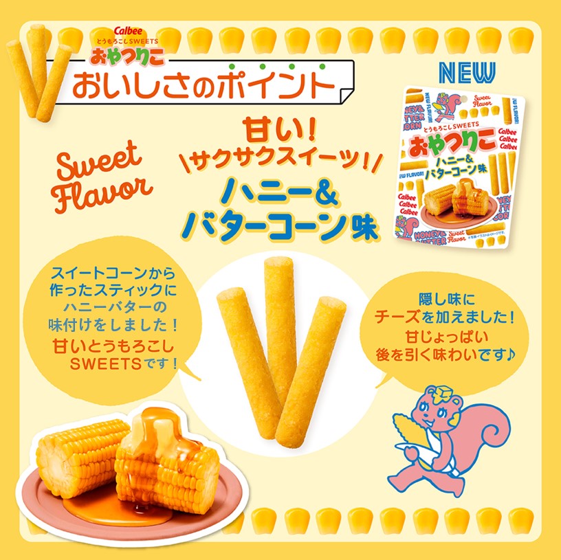 おやつりこ ハニー&バターコーン味』が2023年5月8日(月)から期間限定で発売されました。